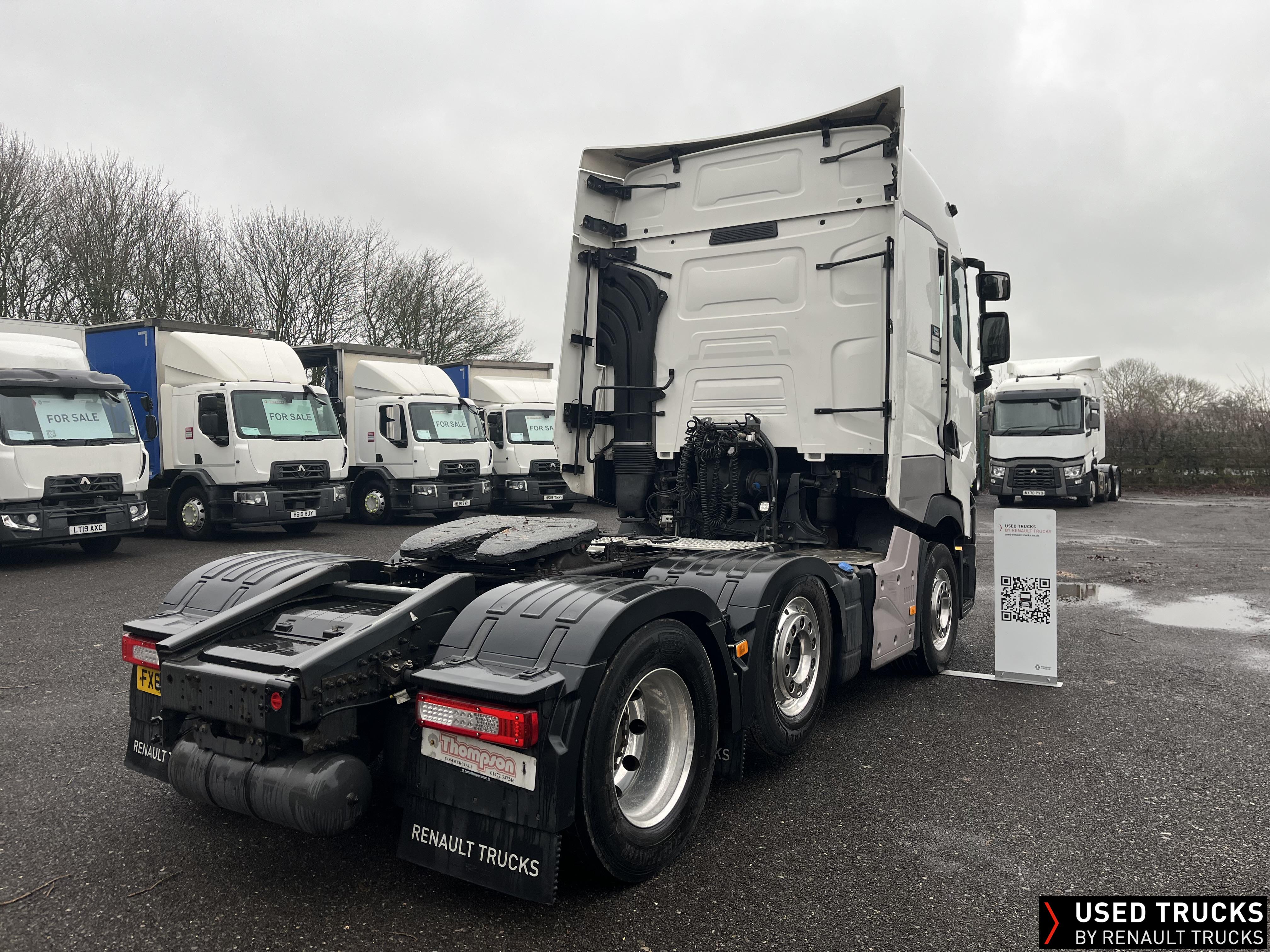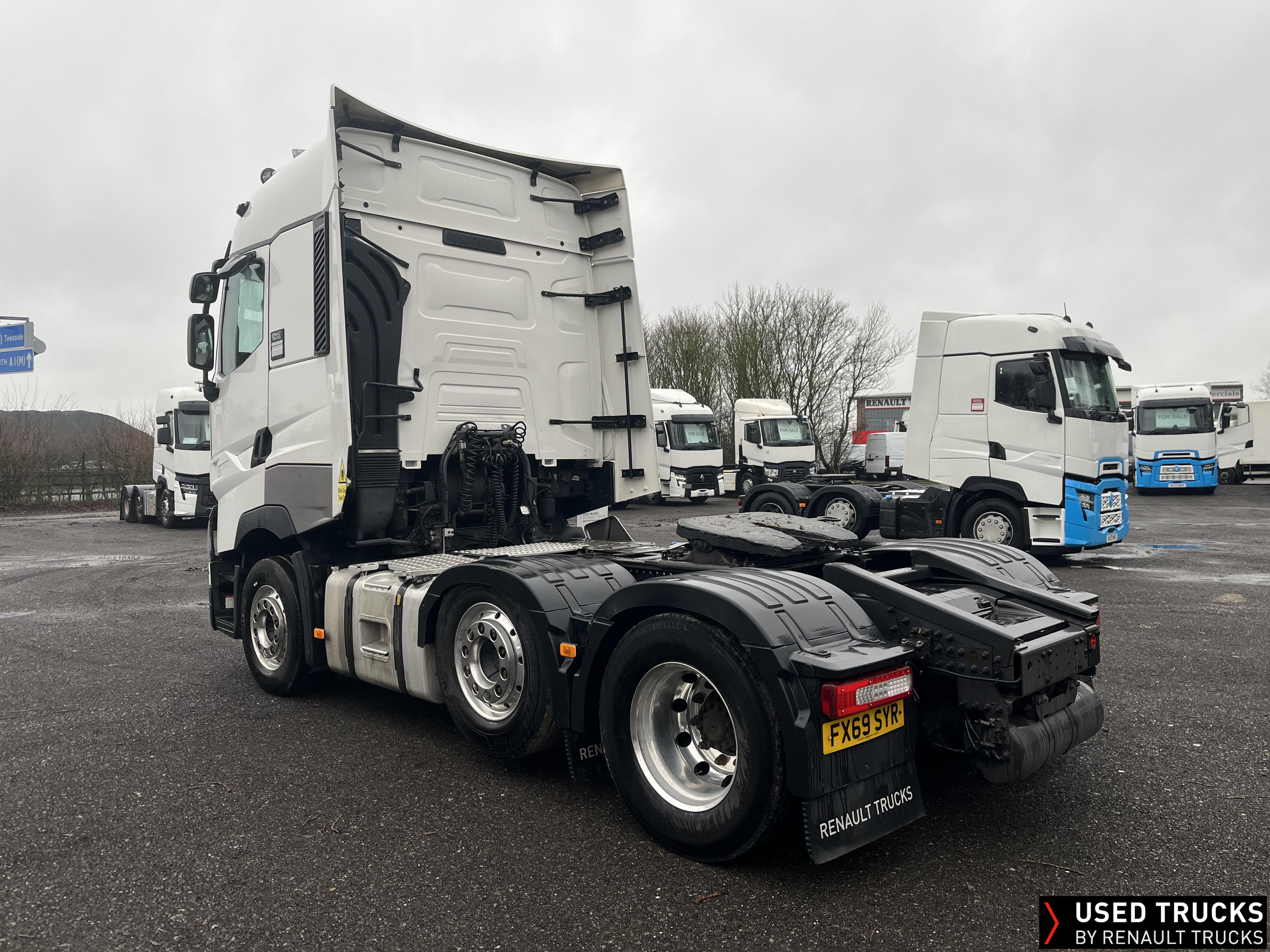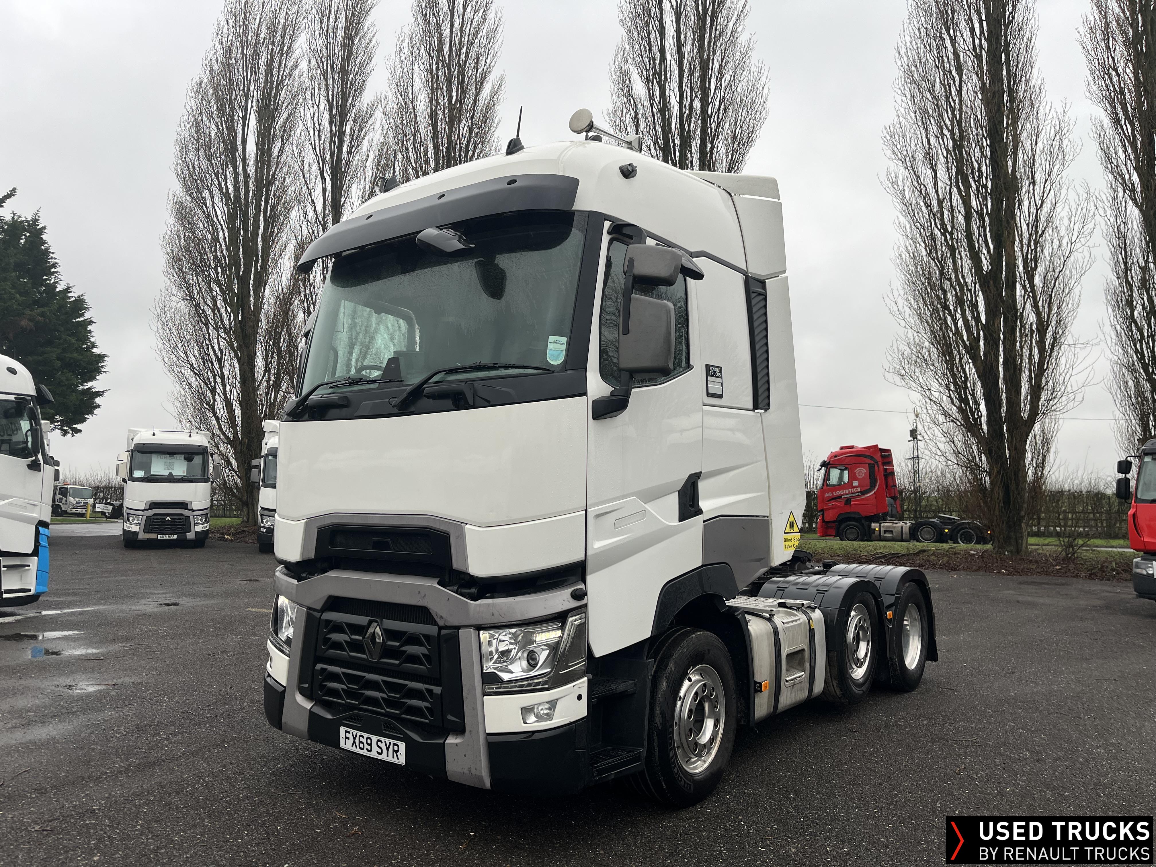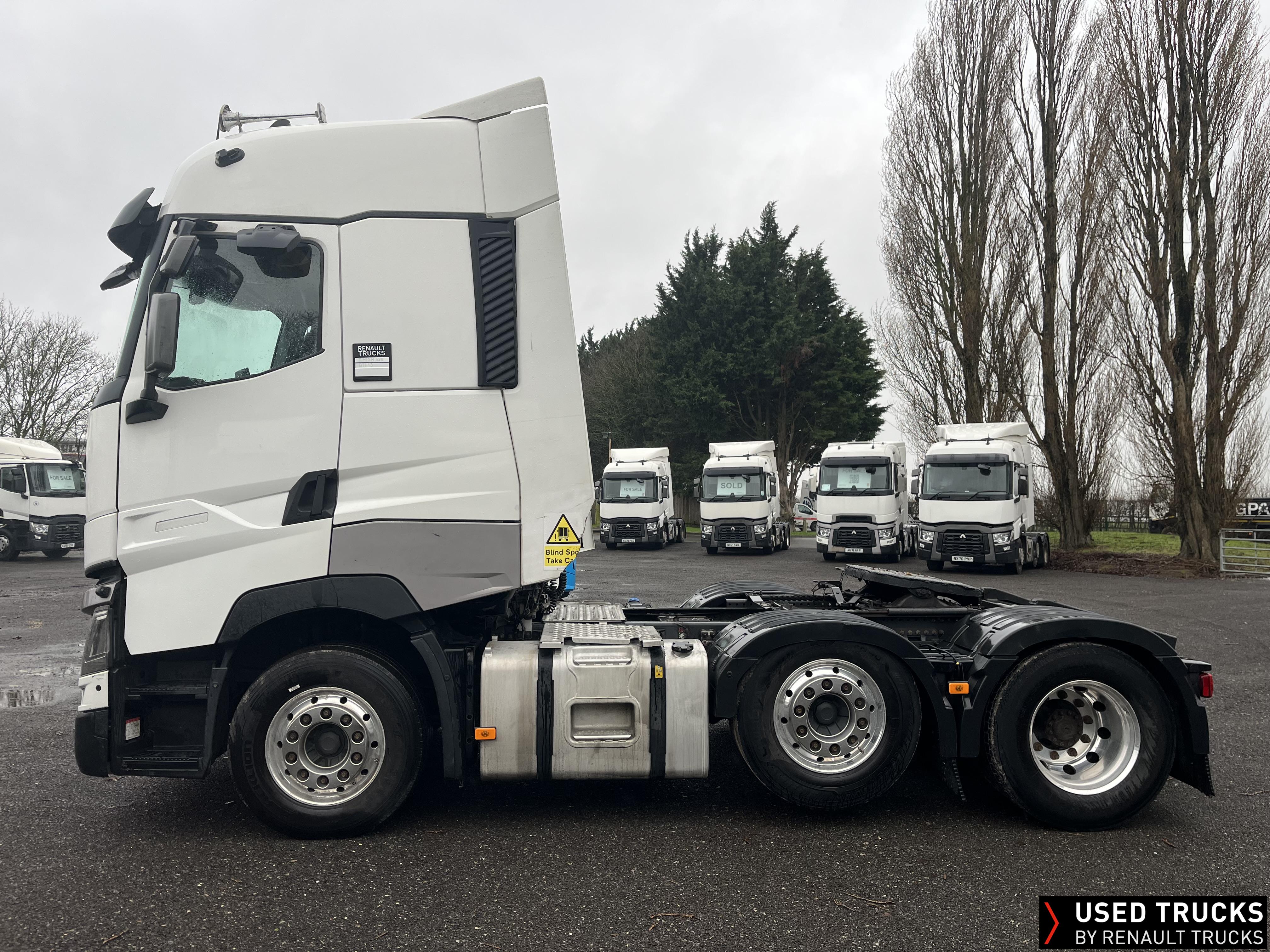 2019 (69) Renault T HIGH 520.26 TML 6x2 Tractor Unit, with just 784,132kms. T HIGH Flat Floor Sleeper Cab, 13 LTR 520 BHP Euro 6 Engine & Automatic Gearbox, Engine Brake, 4-Point Cab Air Suspension, Sunvisor, Cruise Control with Optiroll, Lane Departure Warning System, Emergency Brake Assist, Electronically Regulated Comfort Air Conditioning, Full Air Deflector Kit, Electric Windscreen Sunblind, Drawer under Bunk with 40 Litre Fridge, Microwave, Alcoa Dura bright Alloy Wheels, LED Cab Lighting, Remote Control in Bunk Area for Cab Controls, FM/DAB+ Radio with Bluetooth, USB Port & Jack Socket, 4 Loudspeakers & 2 Tweeters. One-Touch Electric Windows, 12/24V Sockets, Sliding 5th Wheel, LED Rear Lights, LED Day Running Lights & LED Work Light, Front Fog Lights, Automatic Lights & Wipers.