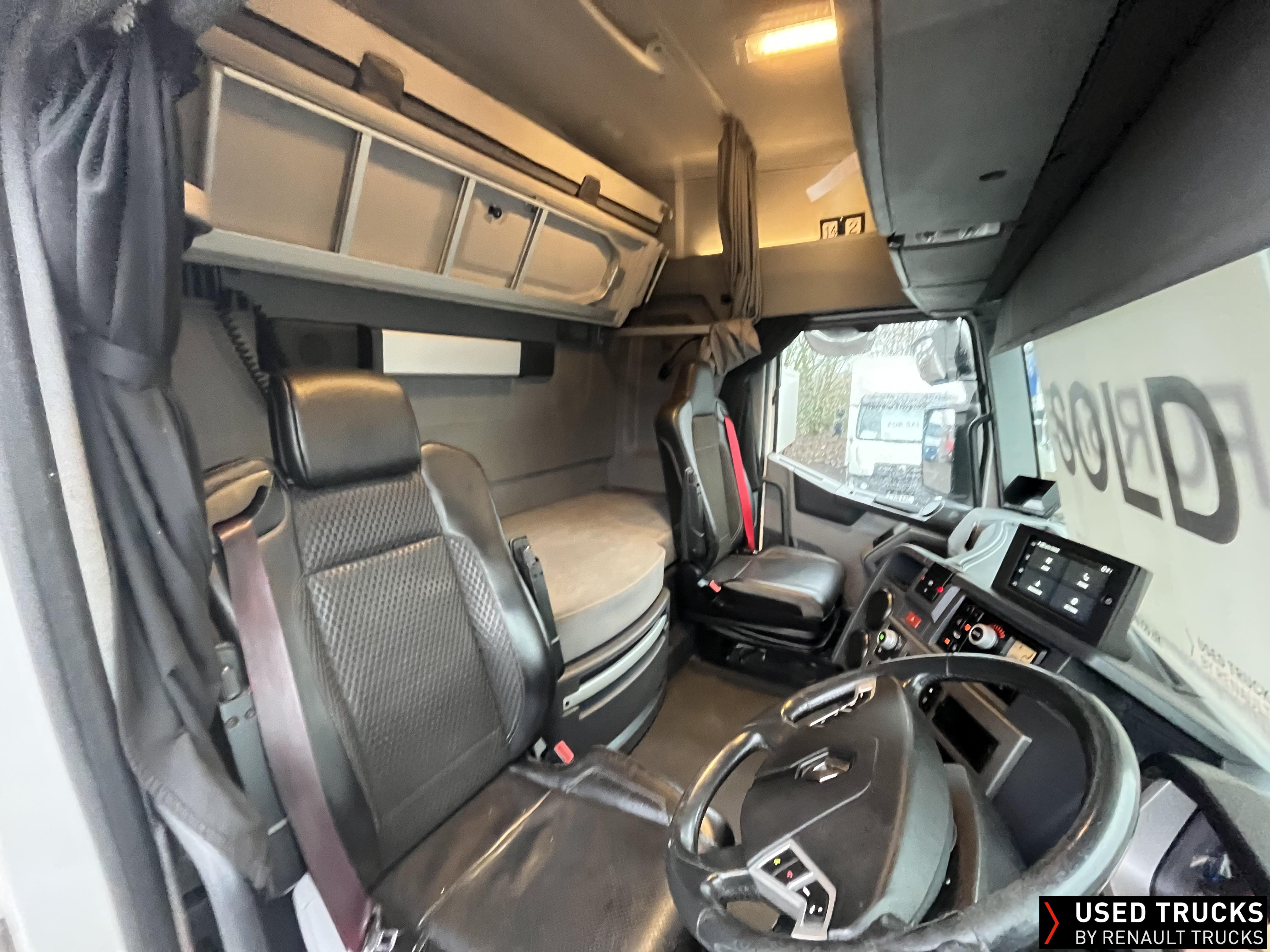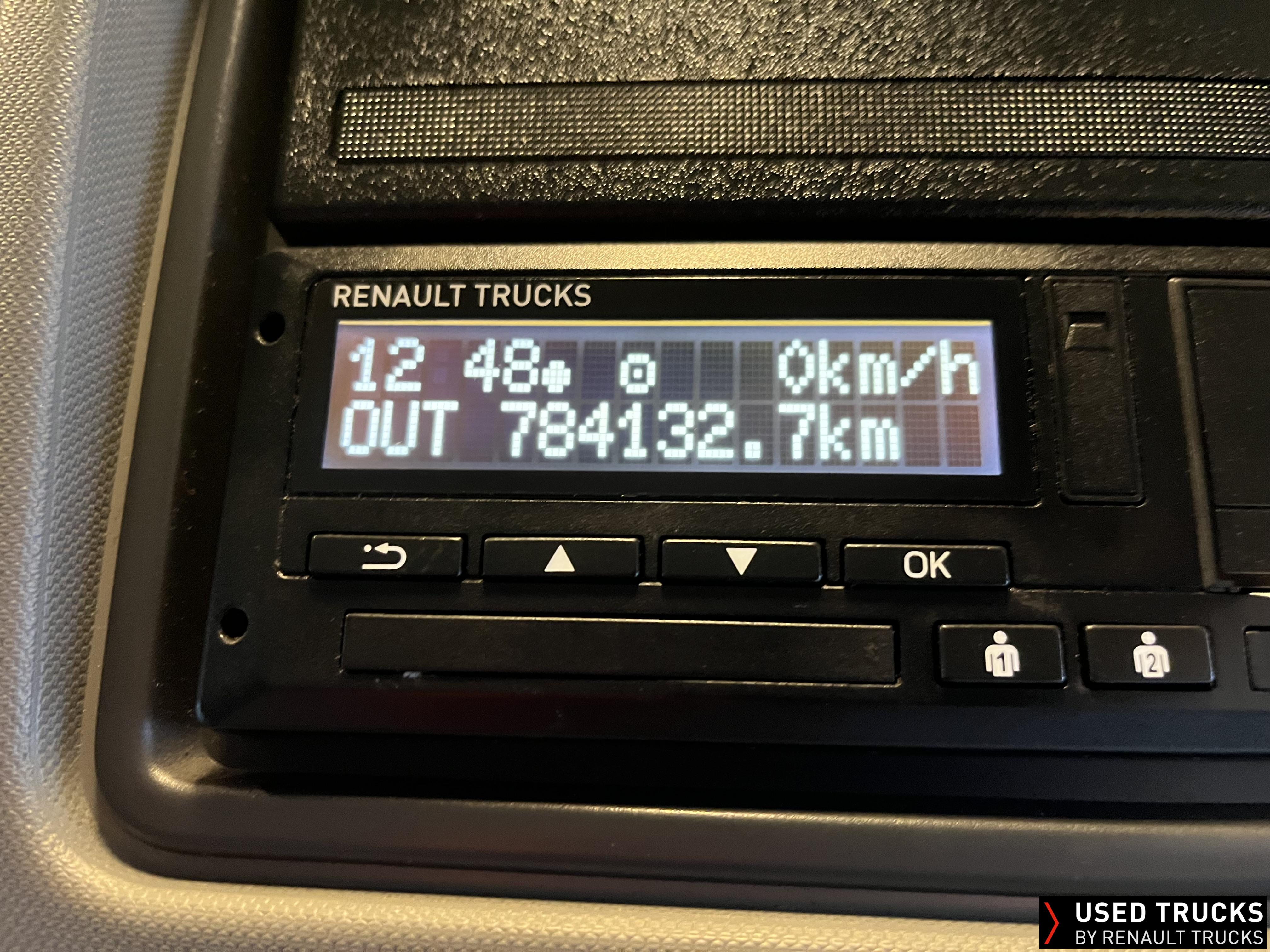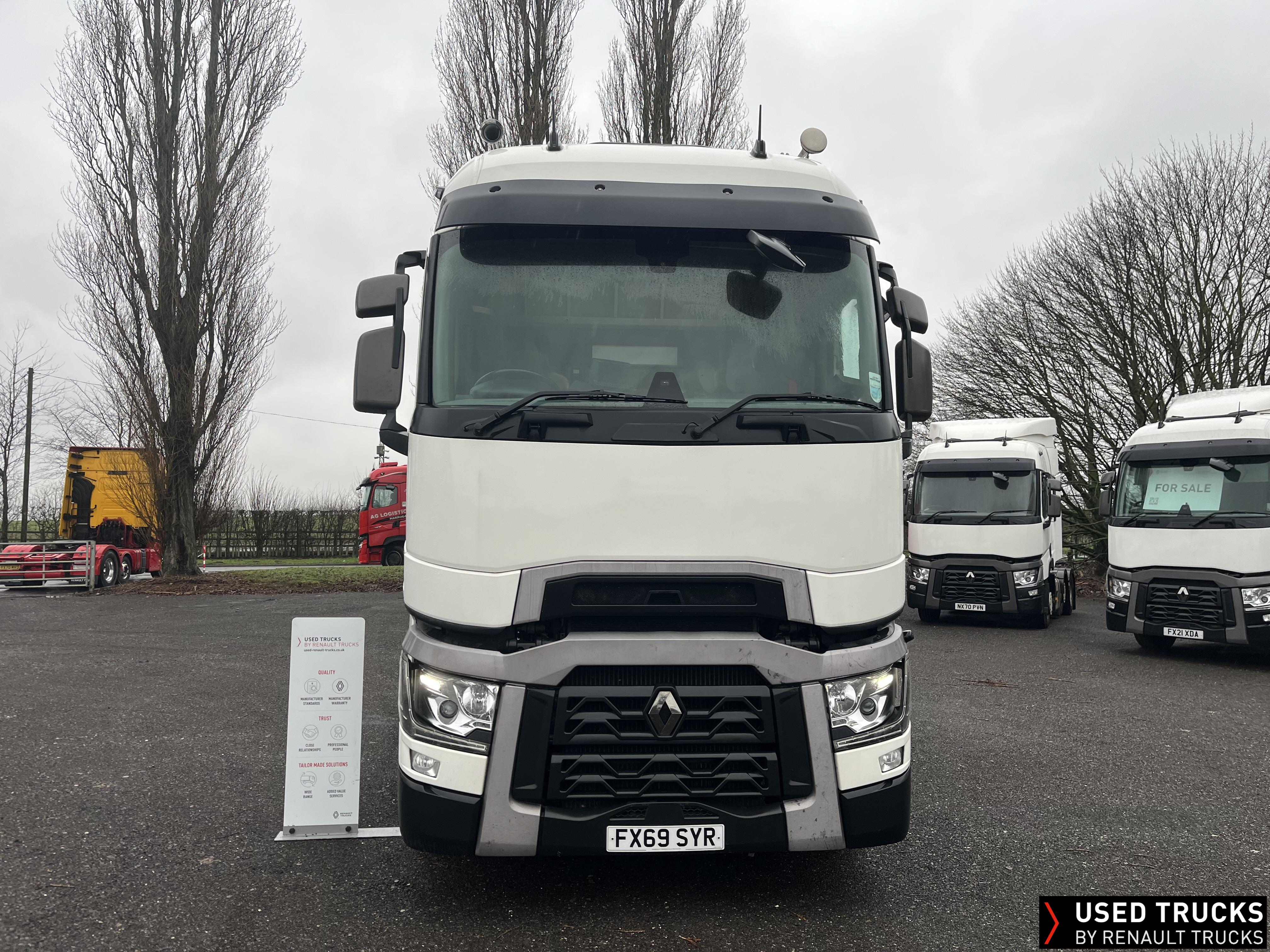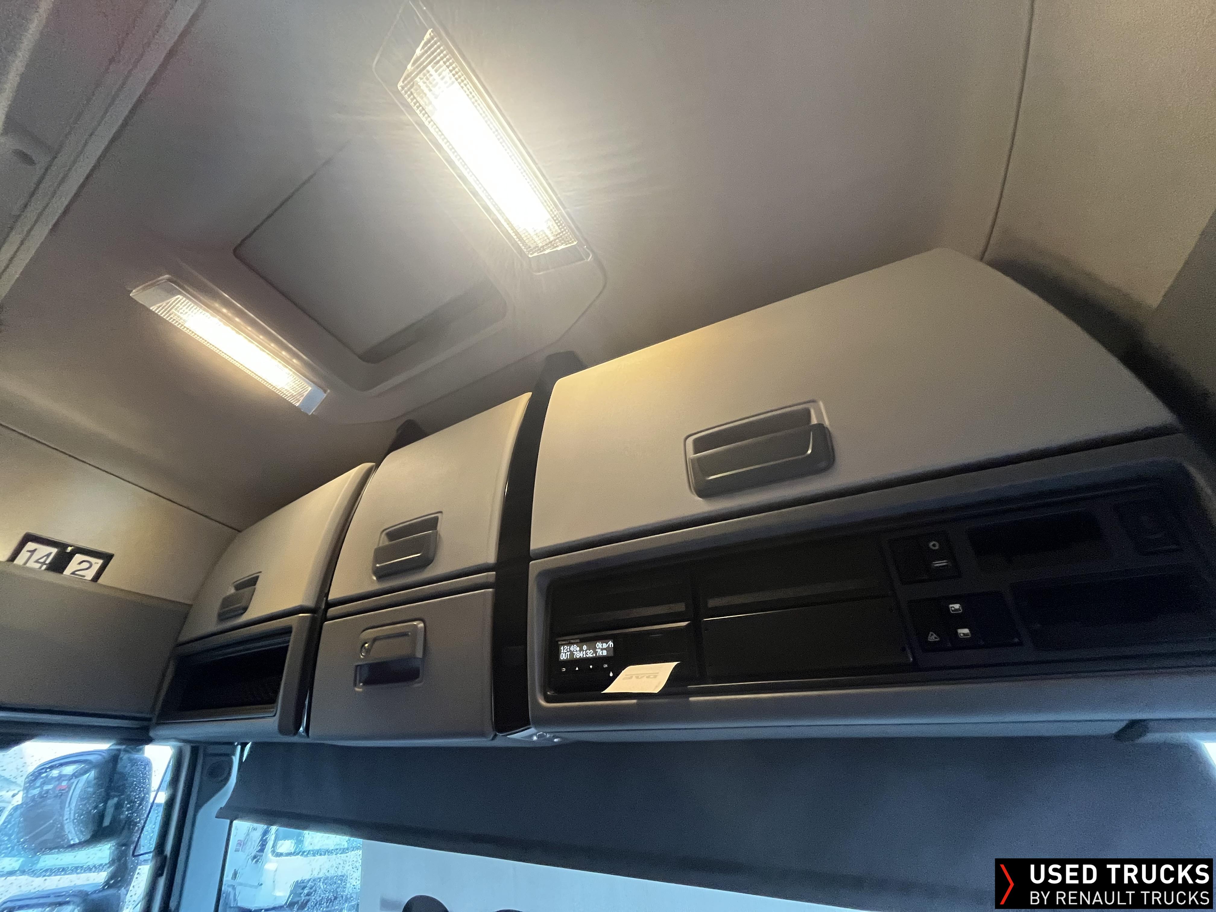 2019 (69) Renault T HIGH 520.26 TML 6x2 Tractor Unit, with just 784,132kms. T HIGH Flat Floor Sleeper Cab, 13 LTR 520 BHP Euro 6 Engine & Automatic Gearbox, Engine Brake, 4-Point Cab Air Suspension, Sunvisor, Cruise Control with Optiroll, Lane Departure Warning System, Emergency Brake Assist, Electronically Regulated Comfort Air Conditioning, Full Air Deflector Kit, Electric Windscreen Sunblind, Drawer under Bunk with 40 Litre Fridge, Microwave, Alcoa Dura bright Alloy Wheels, LED Cab Lighting, Remote Control in Bunk Area for Cab Controls, FM/DAB+ Radio with Bluetooth, USB Port & Jack Socket, 4 Loudspeakers & 2 Tweeters. One-Touch Electric Windows, 12/24V Sockets, Sliding 5th Wheel, LED Rear Lights, LED Day Running Lights & LED Work Light, Front Fog Lights, Automatic Lights & Wipers.