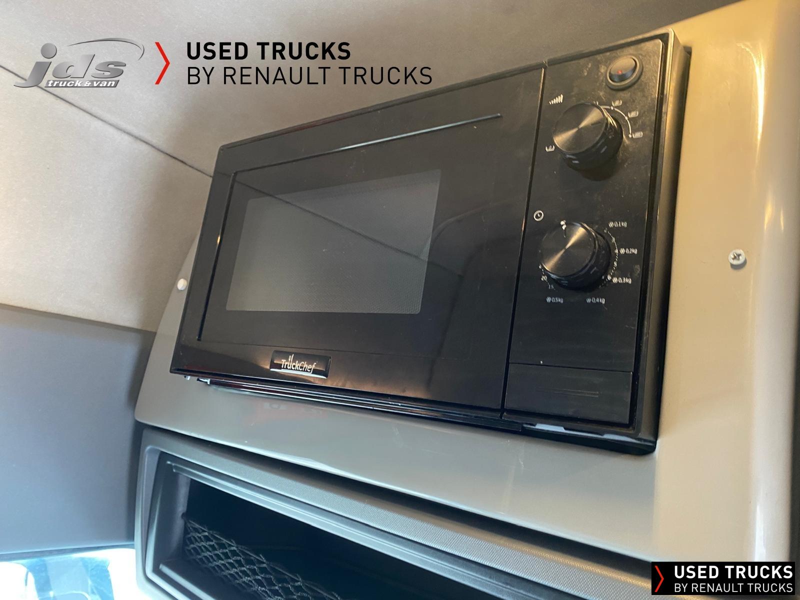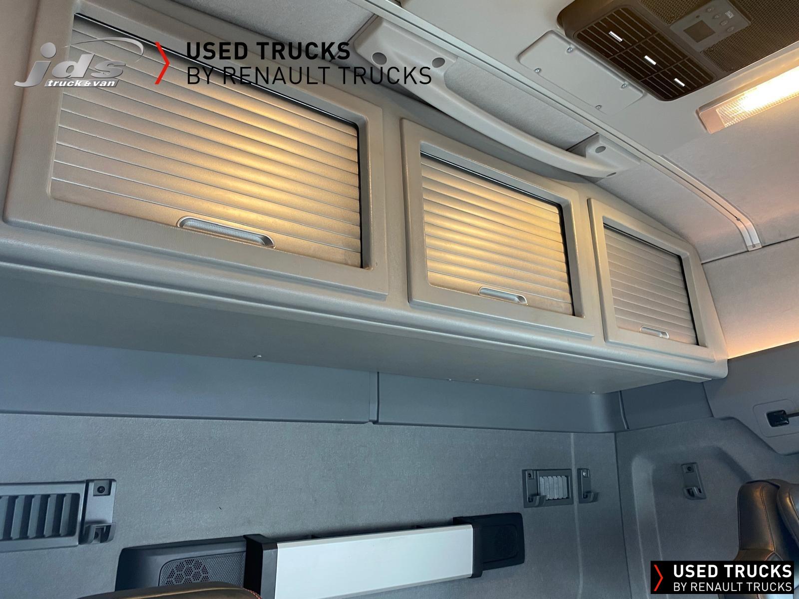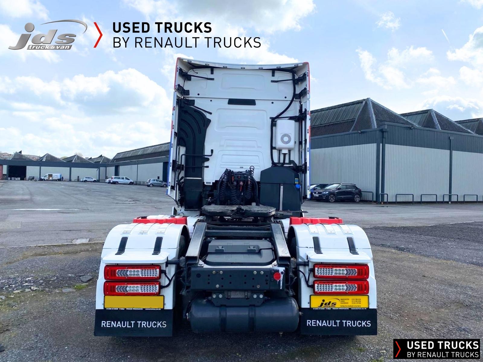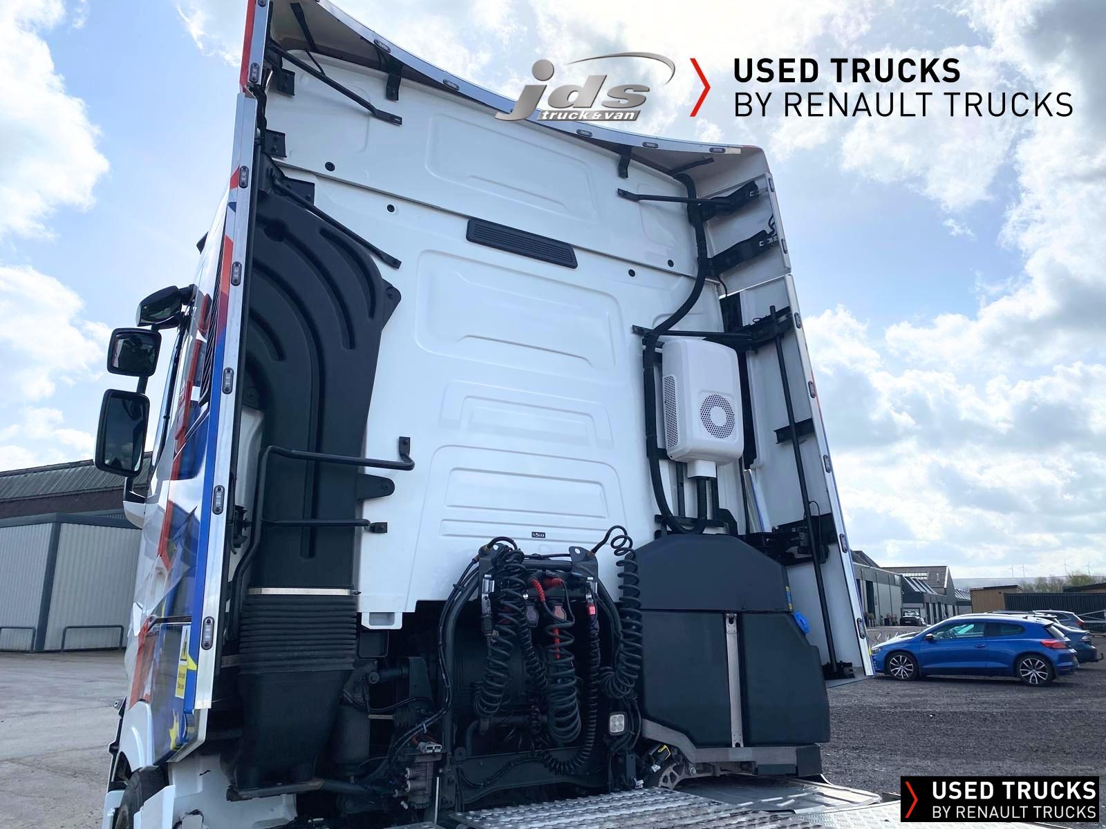 2023 (23) Renault Trucks T HIGH 520.26 TML Evolution 6x2 Midlift Tractor Unit. Sold New by JDS Trucks & Maintained on a Renault Full Repair & Maintenance Contract with just 294,705 kms. Absolutely Amazing Specification with Front Air Suspension, 4100mm Wheelbase, 8-tonne Front Axle with Super-Singles on both Steer Axles, Colour Coded T HIGH Flat-Floor Sleeper Cab, 13 Litre DE13 520 BHP Euro 6 Engine & Automatic Gearbox, Engine Brake, 4-Point Cab Air Suspension, Alcoa Dura-Bright Alloy Wheels, Electric Cab Tilt, Sunvisor, Adaptive Cruise Control (ACC) with ECO Optiroll, Lane Departure Warning System, Emergency Brake Assist, Electronically Regulated Comfort Air Conditioning, Full Air Deflector Kit, Leather Seats, Electric Windscreen Sunblind, Heated Remote Control Mirrors, Luxury Heated Ventilated Driver's Seat with 2 Armrests, Air Suspended Passenger seat with 2 Armrests, Ultimate Leather Steering Wheel, Drawer under Bunk with 40 Litre Fridge, LED Cab Lighting, Remote Control in Bunk Area for Cab Controls, ROADPAD+ System with HGV Sat Nav, , FM/DAB+ Radio with Bluetooth, USB Port & Jack Socket, 4 Loudspeakers & 2 Tweeters. One-Touch Electric Windows, 12/24V Sockets, Sliding 5th Wheel with Extended Rear Platform, LED Front Headlights, Twin LED Rear Lights, LED Day Running Lights & LED Work Light, Front Fog Lights, Additional Cornering Lights, Automatic Lights & Wipers, Integrated Headlamp Washer, Reverse Warning Buzzer, Metallic Door Sills, Heavy Duty Sediment & Prefilter, Telematics Pre-Equipment, FMS Gateway Fleet Management Interface. Additional Specification includes Parked Air Conditioning Unit, Camera System, Air Horns, Cab Wall Lockers, Microwave, Kelsa HiBar, Kelsa LoBar, Spotlights, Grille Lights, Illuminated Renault Badge, Rear Cab Perimeter Lights & Dutch Headboard & Fire-Extinguisher Boxes. Early Viewing Highly Recommended!